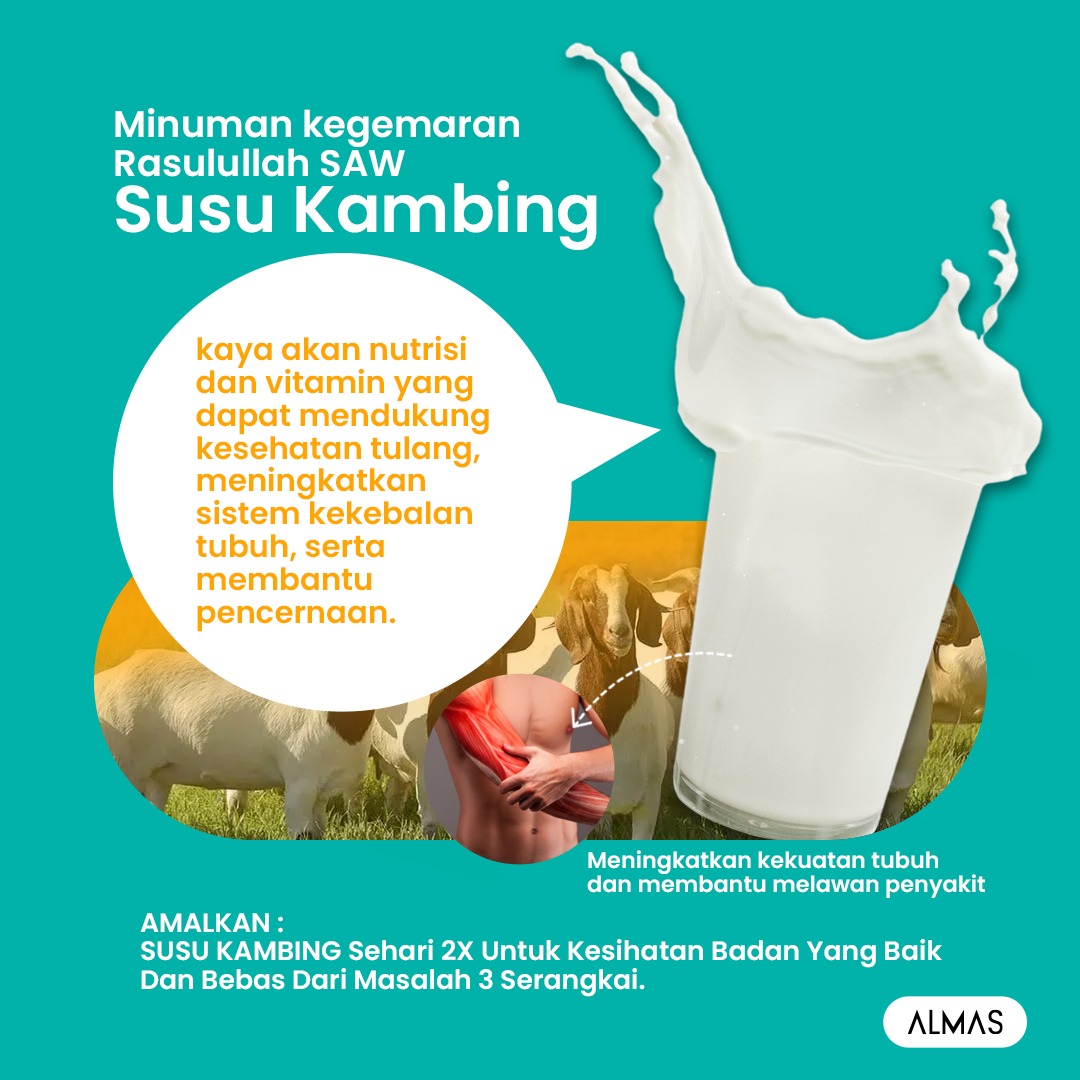 SUSU KAMBING DIEKSTRAK KHAS MENGGUNAKAN TEKNOLOGI TERKINI . Khasiat dan manfaat dalam 1 gelas Serta Di Yakini Halalal Toyyiban.